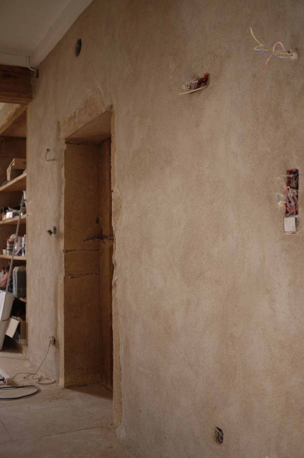 J'aime assez la couleur du sable et les marques du talochage, qui traduisent l'aspect manuel de ce métier. La chaux aérienne permet ce rendu, en évitant de blanchir à outrance l'enduit comme une chaux hydraulique, et en laissant un temps de travail plus long.
