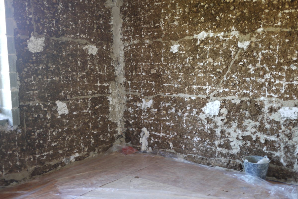 Ici le vieil enduit plâtre qui recouvrait la pièce.